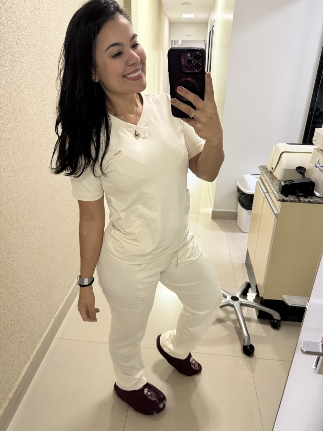 O Scrub Sottile Candy Tecnológico é confeccionado em malha tecnológica com stretch para todos os lados, esticando em todas as direções. A blusa é confeccionada em modelagem baby look, decote “V” e manga curta. A calça também em malha tecnológica e modelagem ampla, com elástico na cintura e bolsos internos e externos. A malha tecnológica usada na confecção dos Scrubs Sottile é semelhante a utilizada em roupas de atletas de alta performance, foi desenvolvida com tecnologias que garantem saúde e bem estar para os profissionais, tais como: elasticidade, conforto térmico, proteção antiviral, ação antibacteriana que impede o mau odor, proteção UV50+, toque macio e geladinho. De modelagem moderna e cores lindas, o conjunto Scrub composto por blusa e calça veste tão bem que pode ser usado no dia a dia, além do ambiente de trabalho.