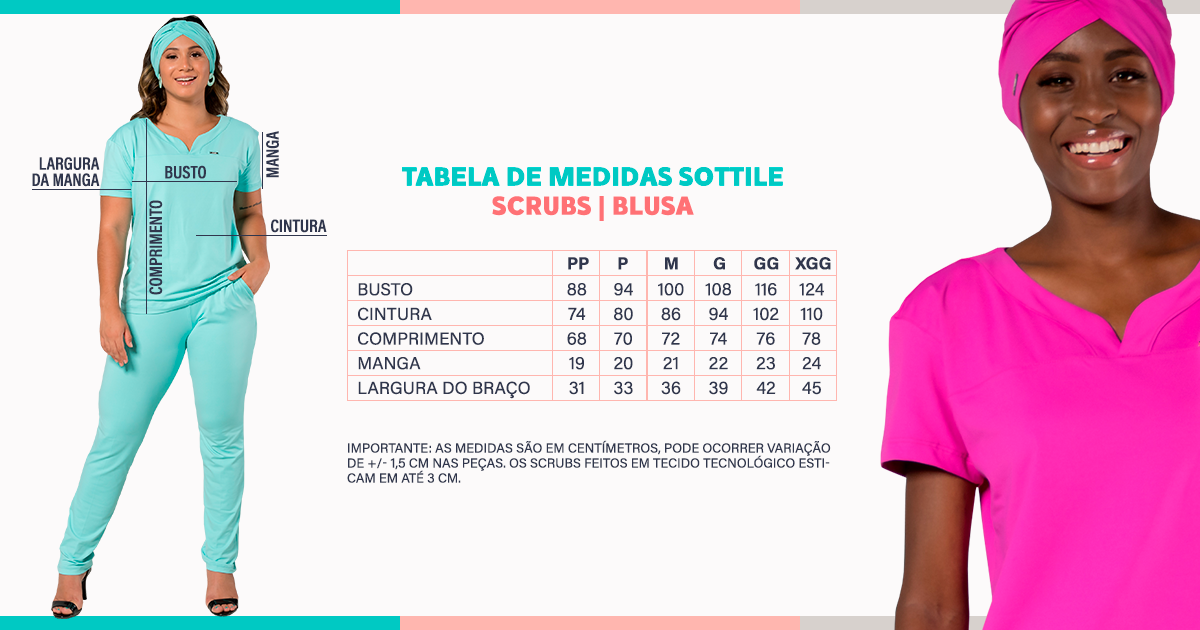 A blusa feminina Sottile Light é confeccionada em malha tecnológica com stretch para todos os lados, esticando em todas as direções. De modelagem ampla, decote “V” e manga curta, ela é perfeita para usar em ambientes que se exige muito movimento por ser leve, fresquinha e contar com a tecnologia anti odor, garantido o conforto durante todo o dia de uso. Muito versátil, pode ser usada tanto em trabalho, quanto casualmente. Use sempre que quiser se sentir linda, confortável e bem arrumada. Combina super bem com calças que compõe o conjunto scrub, calça jeans, leggings, shorts, etc...