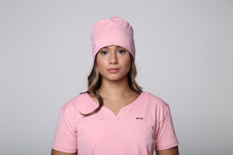 Touca estilo bandana com amarração atrás da cabeça. O tecido composto por poliamida e elastano foi desenvolvido e aprimorado com tecnologias de ação antibacteriana, além de proporcionar agradável sensação de "geladinho", proteção UV50+ e repelência a água. As fibras elásticas que compõem o tecido tecnológico permitem total ajuste a cabeça, com toque extremamente macio e benefícios que ajudam no conforto e na saúde dos profissionais que utilizam esse acessório no dia a dia.